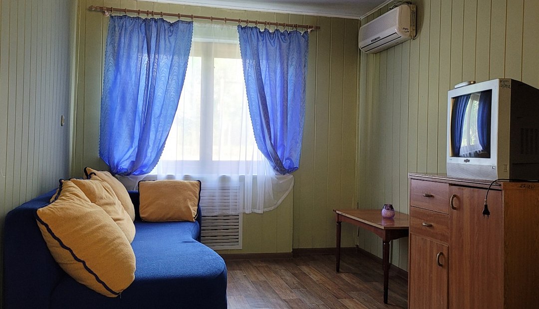 НедостаткиОчень далеко от воды, телевизор не работает( сказали администратору, никто на пришел), душевая настолько мала, что там поместится только или ребенок или очень стройный(даже худой) человек.