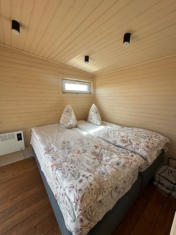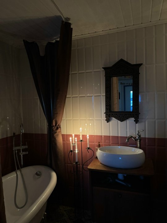В доме двуспальная кровать с ортопедическим матрасом. Ванная комната с душевой кабиной, унитазом и раковиной, также вы сможете воспользоваться бесплатно гигиеническими принадлежностями и феном. Мини-кухня с необходимой техникой: плитой, холодильником, микроволновкой и местом для хранения посуды.