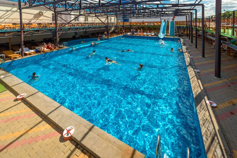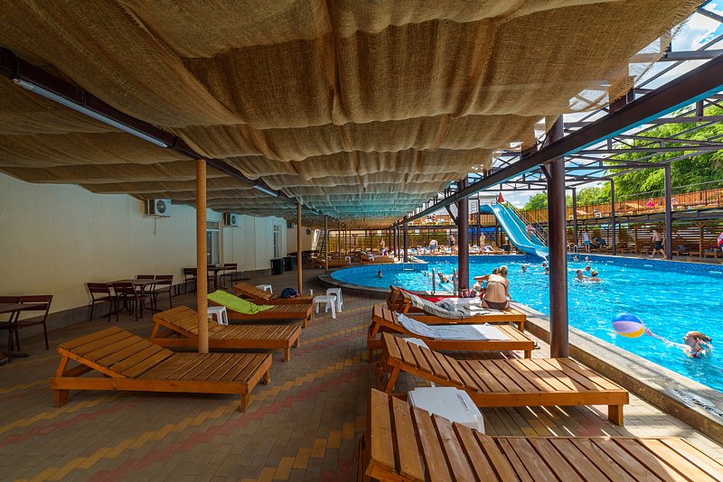 Тип бассейна: открытый бассейнВода в бассейне: подогреваемый бассейнРядом с бассейном: шезлонги, зонтикиТемпература в бассейне: 29 °CРазмеры: 12 x 24 мПлощадь: 288 м²Время работы: от май до октябрьГлубина (диапазон): от 40 до 150 смНа территории базы отдыха находится просторный бассейн с водной горкой и выделенной детской зоной (минимальная глубина). Для проживающих на базе отдыха пользование бассейном включено в стоимость размещения. Дневное размещение у бассейна, Пятница, Суббота, Воскресенье со взрослого 700 рублей с ребёнка до 7 лет 500 рублей, Понедельник, Вторник, Среда, Четверг со взрослого 500 рублей день, с ребёнка до 7 лет 300 рублей.