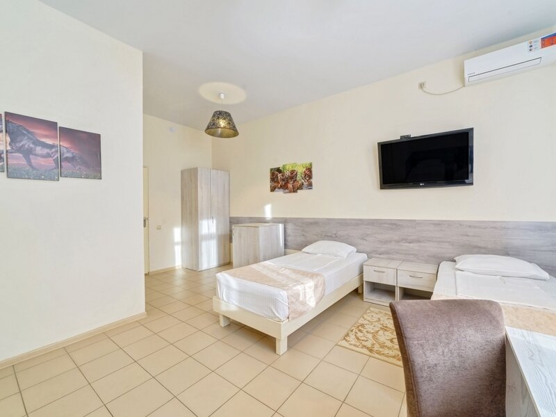 Две односпальные кровати (2 спальных места), собственная ванная комната, набор полотенец, средства личной гигиены, тапочки, фен и чайник (по запросу на ресешене), кондиционер, набор постельного белья, натуральное постельное белье из 100% хлопка, стол и стулья, шкаф, прикроватные тумбочки, кондиционер, набор полотенец, телевизор. Бесплатный Wi-Fi. В стоимость номера входит завтрак.