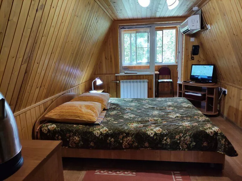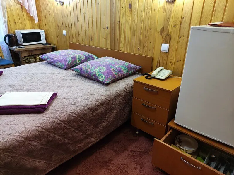 Окна выходят на красивую территорию базы отдыха. В каждом номере есть сплит-система, отопление, туалетная комната с душевой кабиной, WI-FI, телевизор, холодильник, СВЧ-печь, чайник и набор посуды.