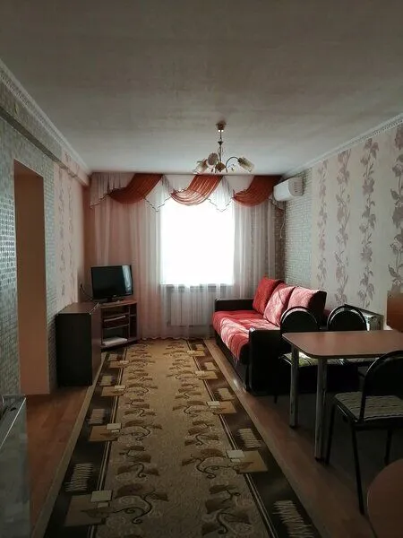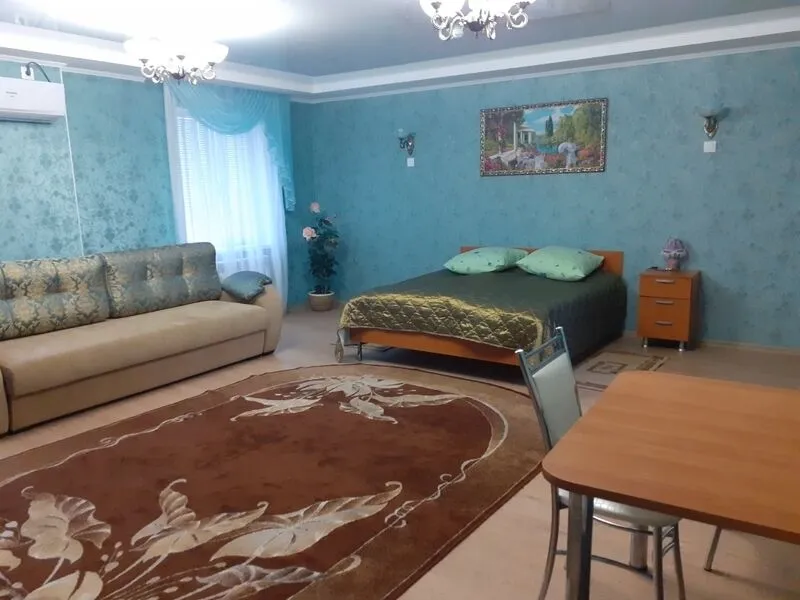 Однокомнатный дом с отдельной столовой. В доме: две 1,5 спальные кровати, прикроватные тумбы, диван, стулья, телевизор, сплит-система, холодильник.