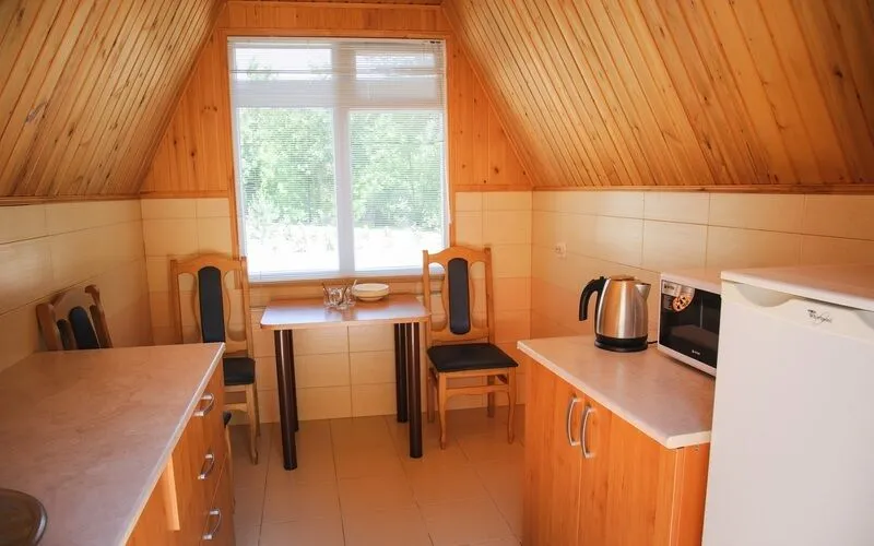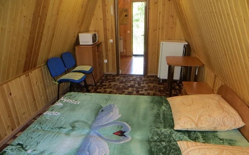 В каждом доме есть сплит-система, отопление, туалетная комната с душевой кабиной, WI-FI, телевизор, холодильник, СВЧ-печь, чайник и набор посуды.