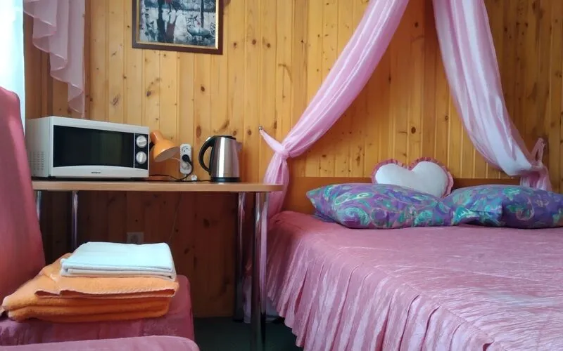 2 номера. В каждом номере есть сплит-система, отопление, туалетная комната с душевой кабиной, WI-FI, телевизор, холодильник, СВЧ-печь, чайник и набор посуды.
