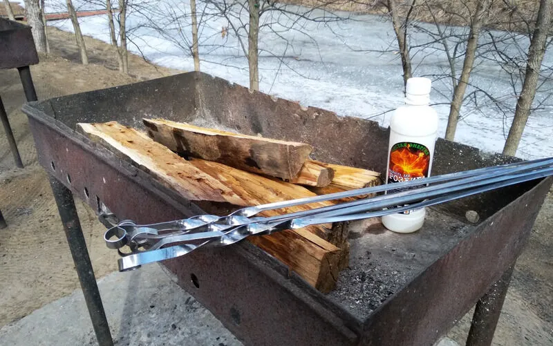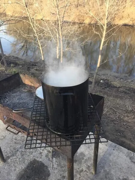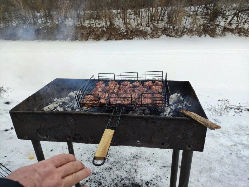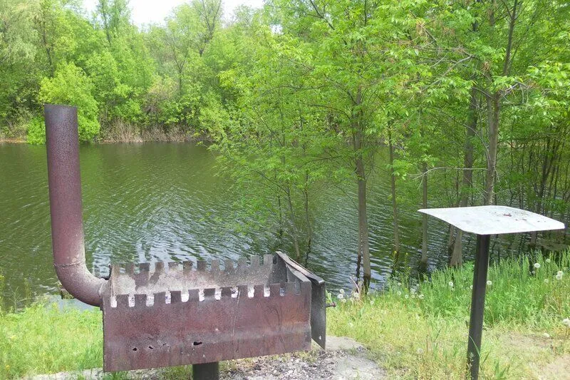 На берегу ерика установлен мангал.