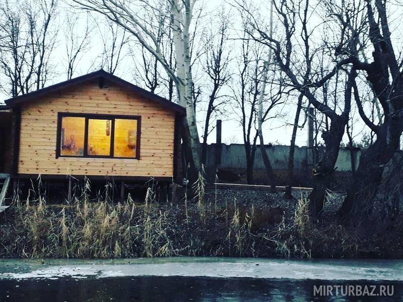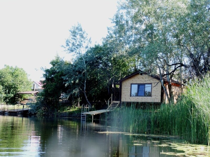Находится на берегу реки с пристроенной пристанью.и панорамным окном с видом на реку.
