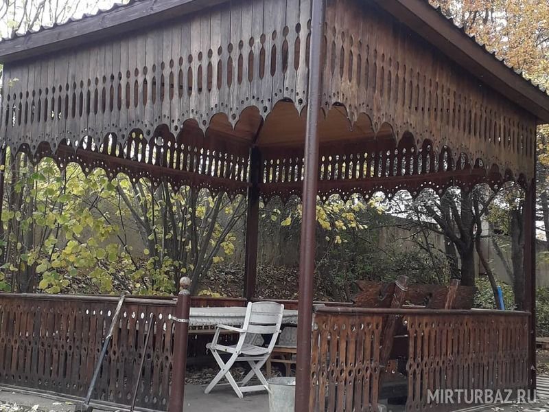 Уютная деревянная беседка для отдыха на свежем воздухе.