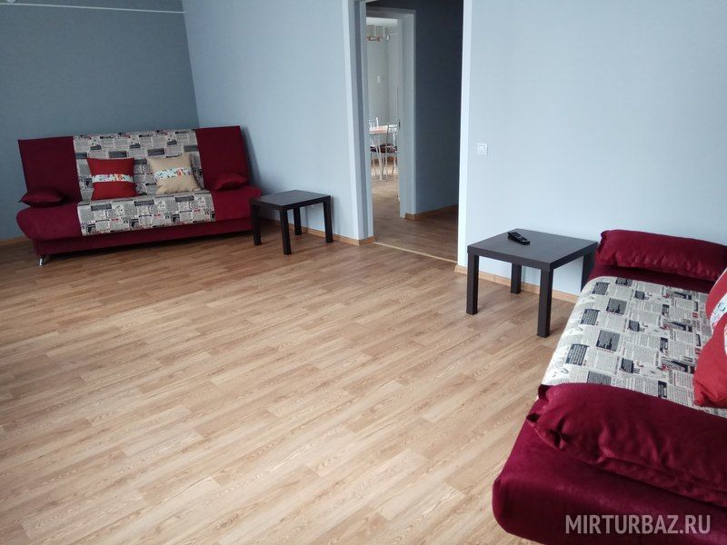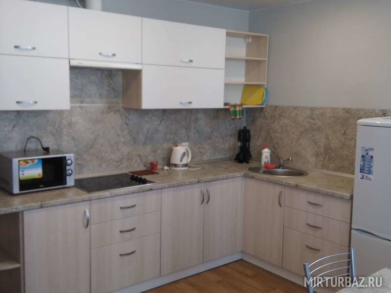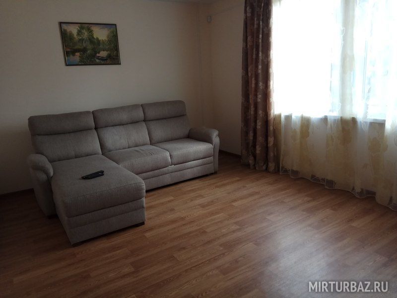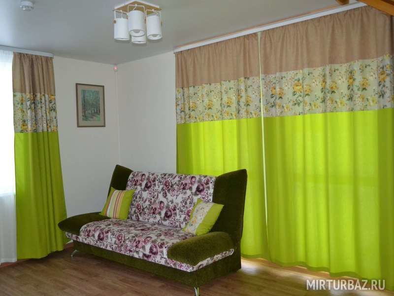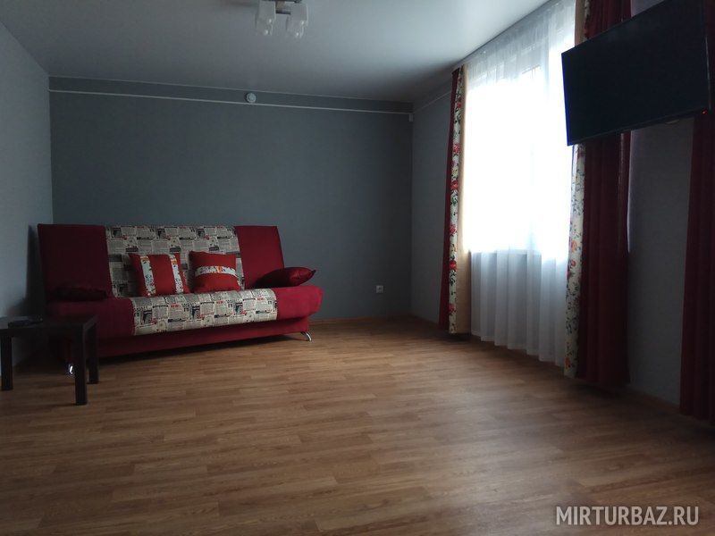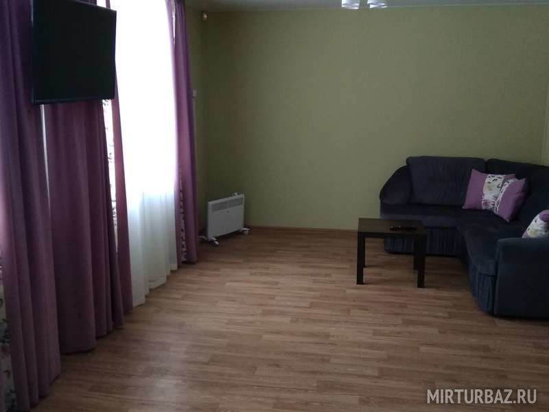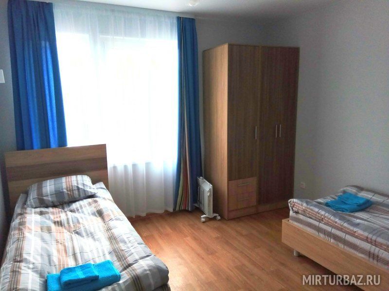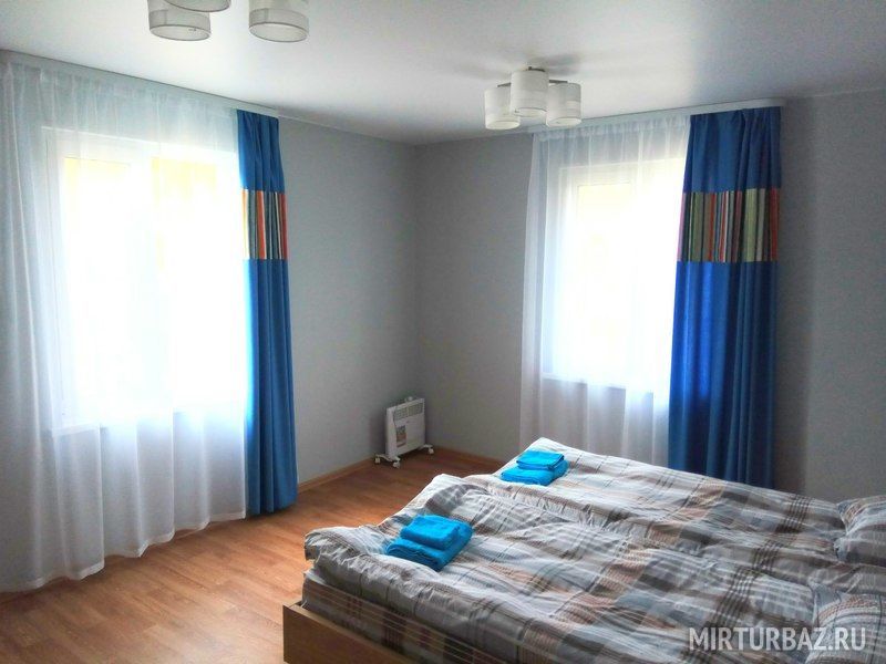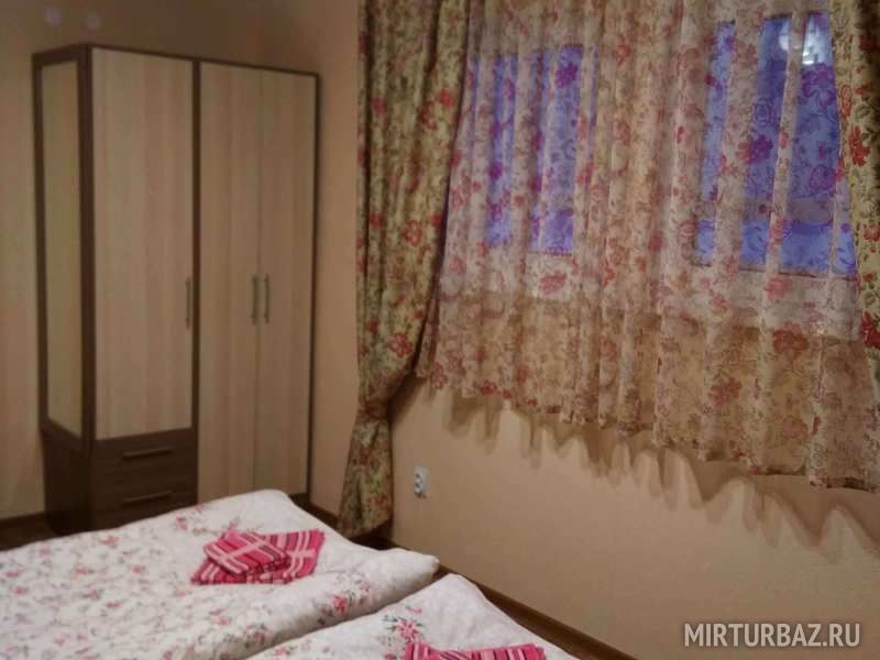 Из одного номера на втором этаже можно выйти на большой балкон. Дом оснащен одним общим телевизором в гостиной, микроволновкой, холодильником с морозилкой, электрическим чайником, вытяжкой, электрической плитой с варочной поверхностью, наборами столовой и кухонной посуды, приборами на количество основных мест. Дом оснащен охранно–пожарной сигнализацией. Отопление электрическое.