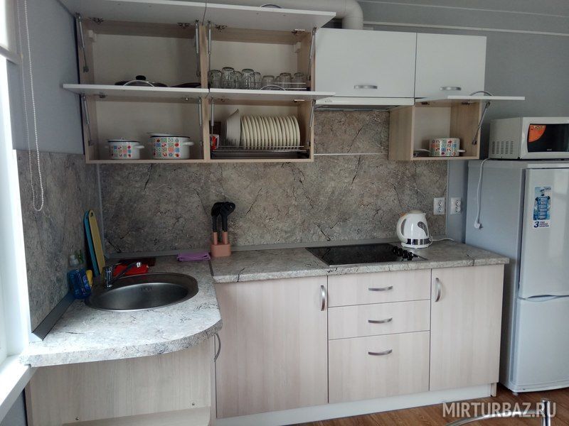 Дом оснащен одним общим телевизором в гостиной, микроволновкой, холодильником с морозилкой, электрическим чайником, вытяжкой, электрической плитой с варочной поверхностью, наборами столовой и кухонной посуды, приборами на количество основных мест. Дом оснащен охранно–пожарной сигнализацией. Отопление электрическое.
