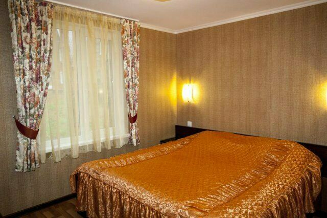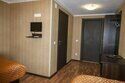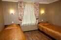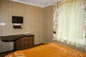 В номере люкс в спальне две односпальные кровати, которые легко трансформируются в двуспальную кровать, рабочий стол. В гостиной диван (раскладывается под спальное место), телевизор, прихожая. Сан.узел с душевой кабиной.