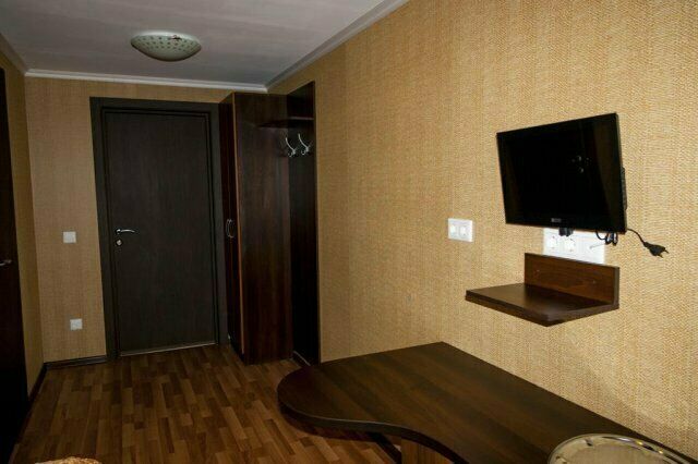 В стандартном номере две односпальные кровати, которые легко трансформируются в двуспальную кровать, сан.узел с душевой кабиной, прихожая, рабочий стол, ТВ.