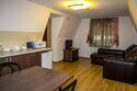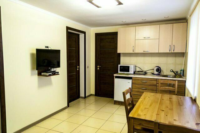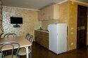 2х-местный номер-студия. Одна комната с большим диваном, обеденной зоной, кухонным гарнитуром, ТВ. Кухня оборудована холодильником, микроволновой печью, электрочайником, необходимым набором посуды. Санузел с душевой кабиной.