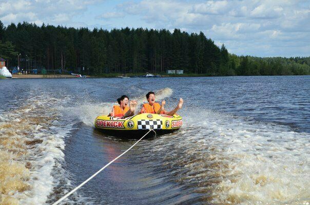 Развлечения и спортСпортивный центрЕсли хочется скорости, озорства и ощущение полета можно арендовать катер, покататься на ватрушках, водных лыжах. Бодрящий прилив адреналина Вам гарантирован. В прокат можно взять также катамаран, зорб, гребную лодку. В зимнее время можно покататься на горке, лыжах, ватрушках, коньках. Спортивный центрОписаниеЕсли хочется скорости, озорства и ощущение полета можно арендовать катер, покататься на ватрушках, водных лыжах. Бодрящий прилив адреналина Вам гарантирован. В прокат можно взять также катамаран, зорб, гребную лодку. В зимнее время можно покататься на горке, лыжах, ватрушках, коньках. Прогулка на катере с каютойвместимость до 5 человек Прогулка на катере с каютойОписаниевместимость до 5 человек Детский досугЧитать полностьюБаза отдыха заботится об интересном досуге и для своих юных гостей, пока взрослые отдыхают как им нравится, ребят ждет детская площадка. Здесь есть качели, горки, турники, батут. Можно часами не покидать площадки, переходя от одного «снаряда» к другому – так все увлекательно. Активный отдых и подвижные игры на свежем воздухе для детей особенно важны. Детский досугОписаниеБаза отдыха заботится об интересном досуге и для своих юных гостей, пока взрослые отдыхают как им нравится, ребят ждет детская площадка. Здесь есть качели, горки, турники, батут. Можно часами не покидать площадки, переходя от одного «снаряда» к другому – так все увлекательно. Активный отдых и подвижные игры на свежем воздухе для детей особенно важны. Прогулка на скоростном катере Crowlineмощность 270 л.с., вместимость до 6 человек Прогулка на скоростном катере CrowlineОписаниемощность 270 л.с., вместимость до 6 человек Набор для хоккеяКлюшка с мячом Набор для хоккеяОписаниеКлюшка с мячом Комплект лыжныйлыжи, ботинки, палки Комплект лыжныйОписаниелыжи, ботинки, палки