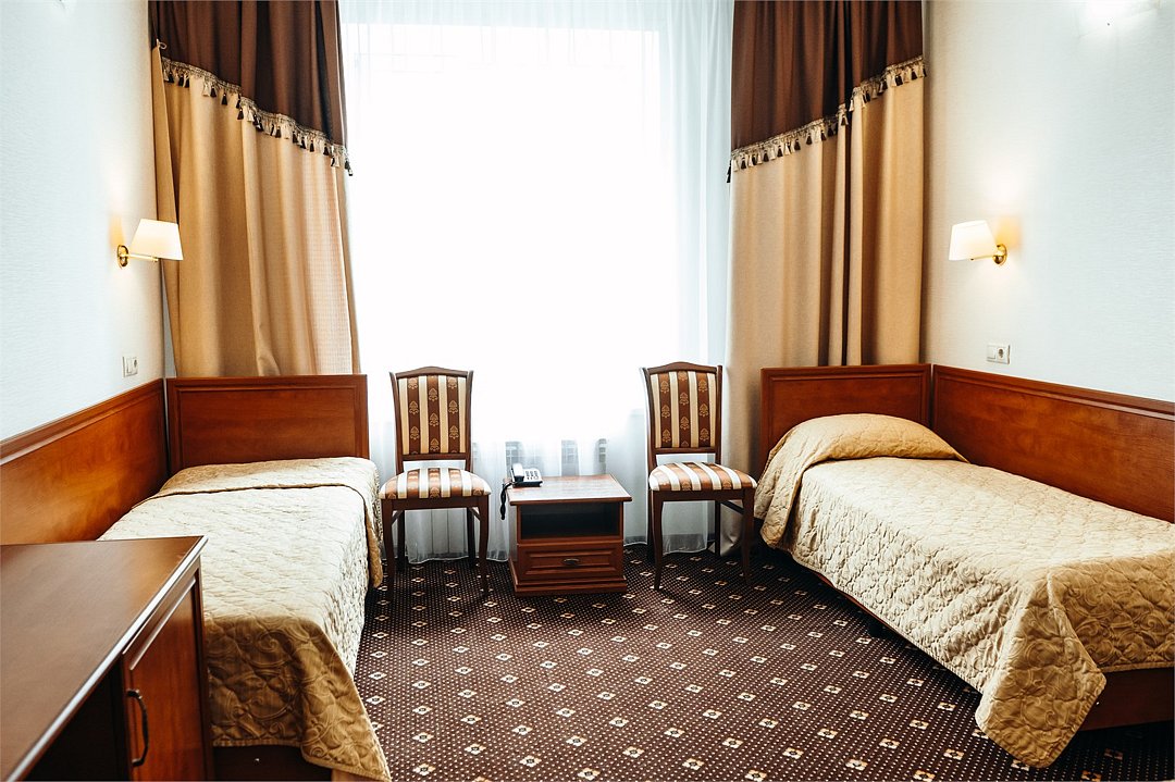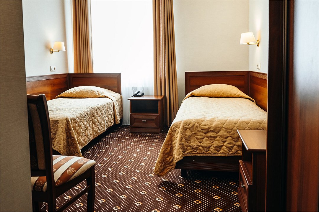 Однокомнатный номер с двумя раздельными односпальными кроватями. К Вашим услугам две односпальные кровати, рабочий стол, гардероб, холодильник, телевизор, туалетная комната с ванной. Уютная обстановка.Услуги и удобства