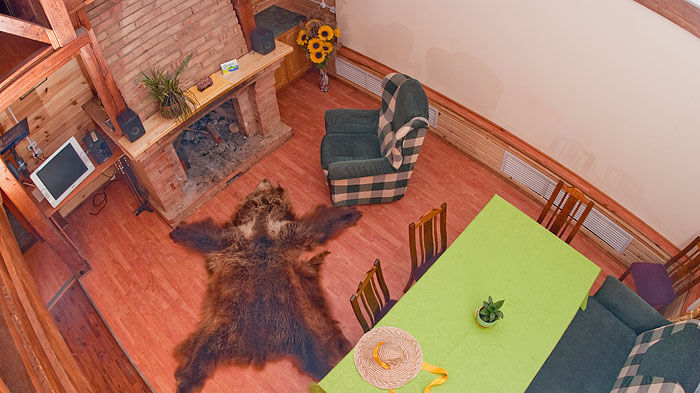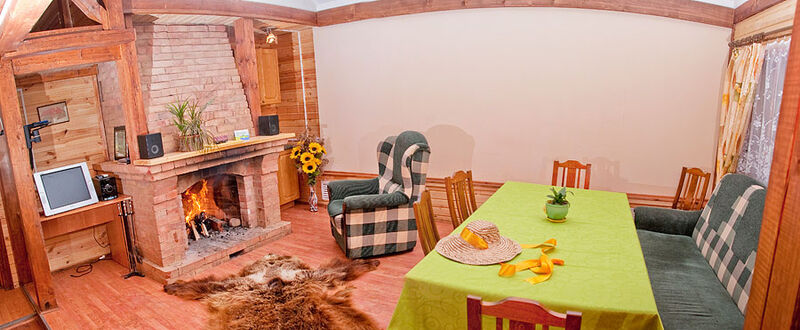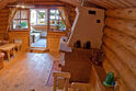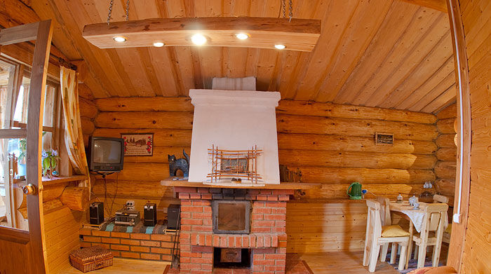 В домике можно посидеть у камина.