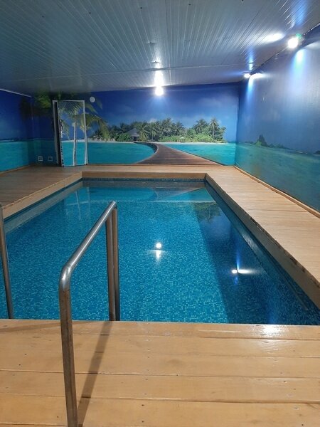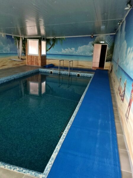 Тип бассейна: крытый бассейнВода в бассейне: подогреваемый бассейнРазмеры: 5 x 8 мПлощадь: 40 м²Глубина: 200 смПосещение бассейна включено в стоимость посещения двухэтажной бани на дровах.