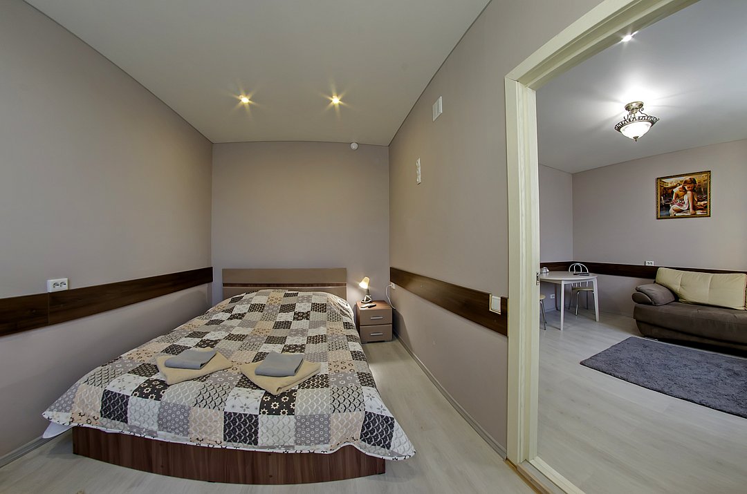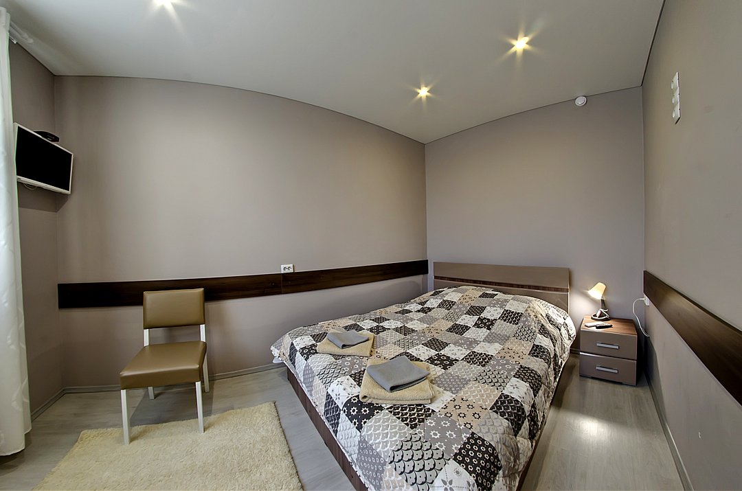Гостям предлагаются однокомнатные и полуторакомнатные номера с двуспальными кроватями. Удобная мебель в просторных и светлых комнатах создает домашнюю атмосферу. Для Вашего удобства номера оборудованы телевизором, номера повышенной комфортности — с кабельным телевидением и кондиционером. В гостевом доме Вас также ждет бесплатный Wi-Fi на всей территории, круглосуточная охраняемая автостоянка (входит в стоимость номера).