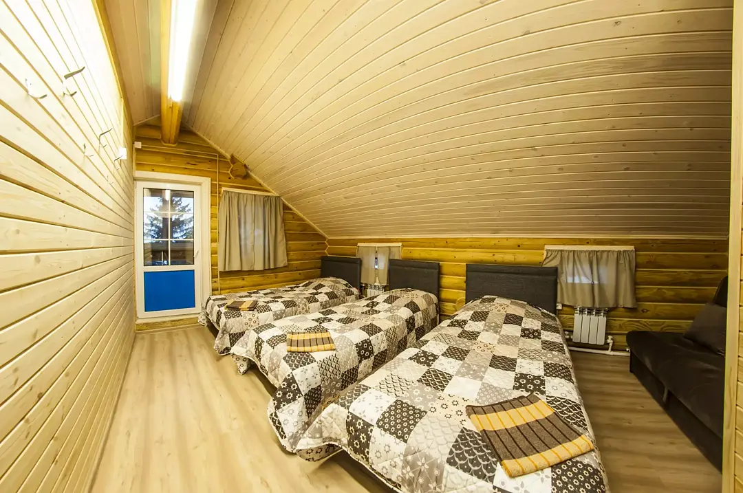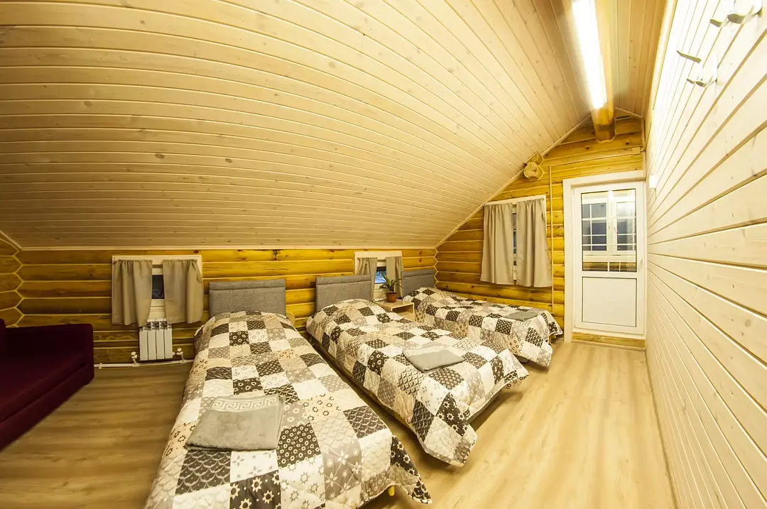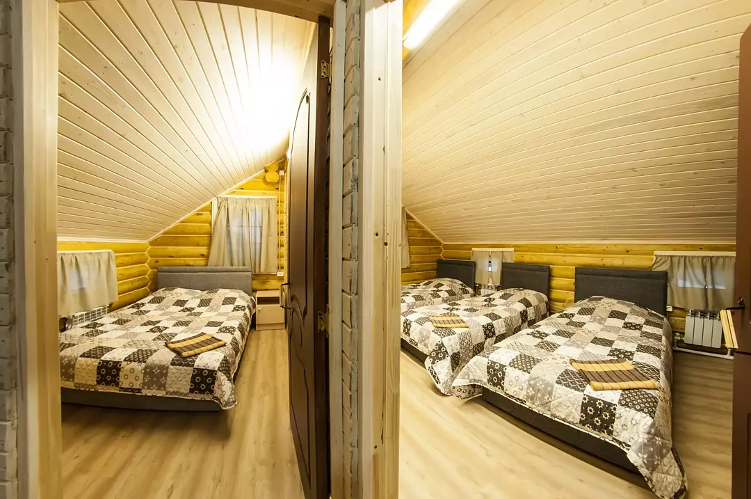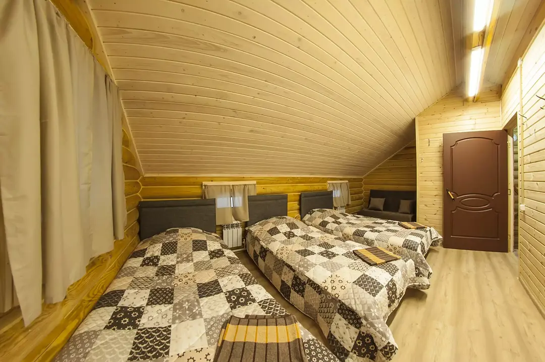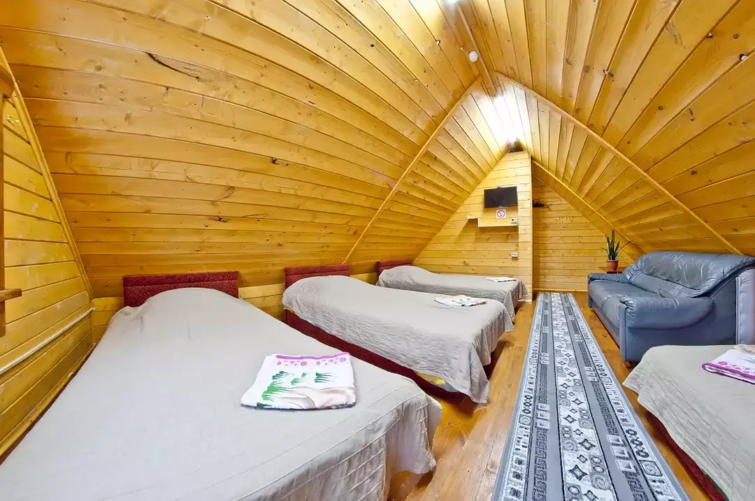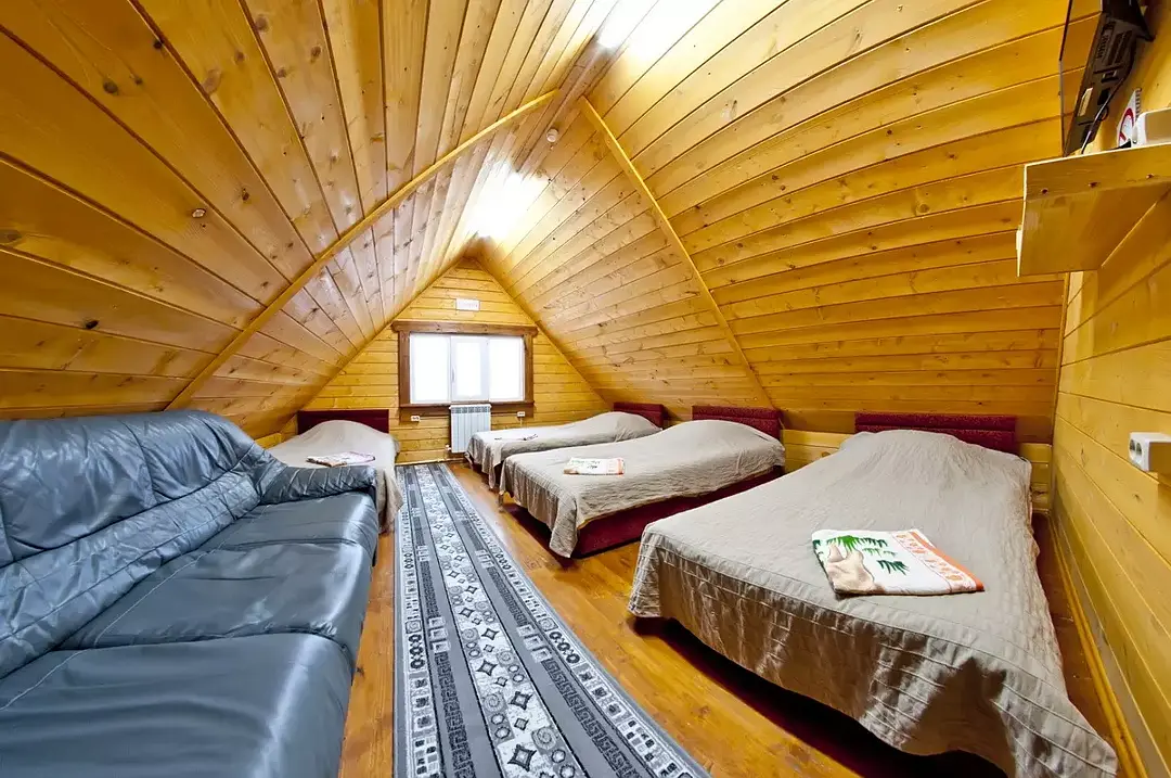 - 1 двуспальная кровать + 3 односпальные кровати + раскладывающийся диван;