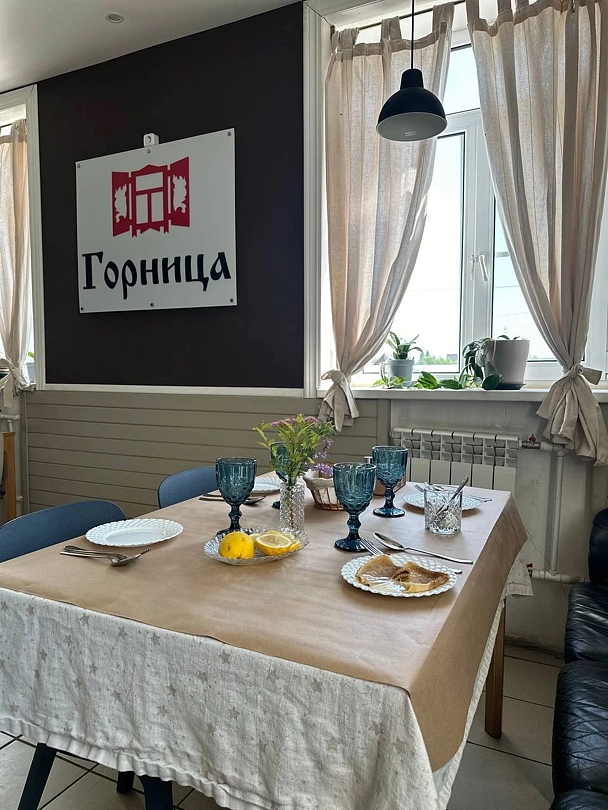 На территории гостиницы работает круглосуточно кафе. Опытные повара готовы порадовать Вас вкусными домашними блюдами, которые готовят из экологически чистых, исключительно Вологодских продуктов. Светлый, просторный, уютный зал, большой плазменный телевизор, мягкие кожаные диваны — всё располагает к приятному отдыху после дальней дороги.