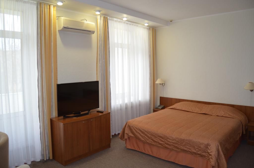 Номер первой категории. Однокомнатный номер с балконом общей площадью 36 м2. Двуспальная кровать 180 см и двуспальный диван, который может быть использован в качестве дополнительного места. Размещение на дополнительном месте платное. Душевая кабина, туалет и ванная комната раздельные. Комплектация: - кондиционер - холодильник - ТВ - беспроводной интернет - вода - ванные принадлежности, полотенца, тапочки, халаты - фен - зубная щетка и паста, бритвенный набор за дополнительную платуУслуги и удобства