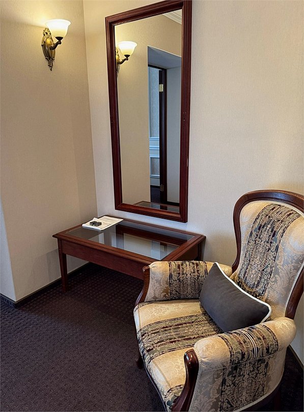 Wi-Fi, телефон, IP-телефон, ванна, халаты, тапочки, балкон, балкон с красивым видом, две односпальные или большая двуспальная кровать, журнальный столик, ковер, мягкая мебель, кресло, паркет, внутренний телефон, шкаф-купе, рабочий стол, холодильный шкаф, онлайн-регистрация до заезда, услуги прачечной (платно), бутилированная вода, затемняющая штора, зеркало в полный рост, можно с питомцамиВ гостиничном номере