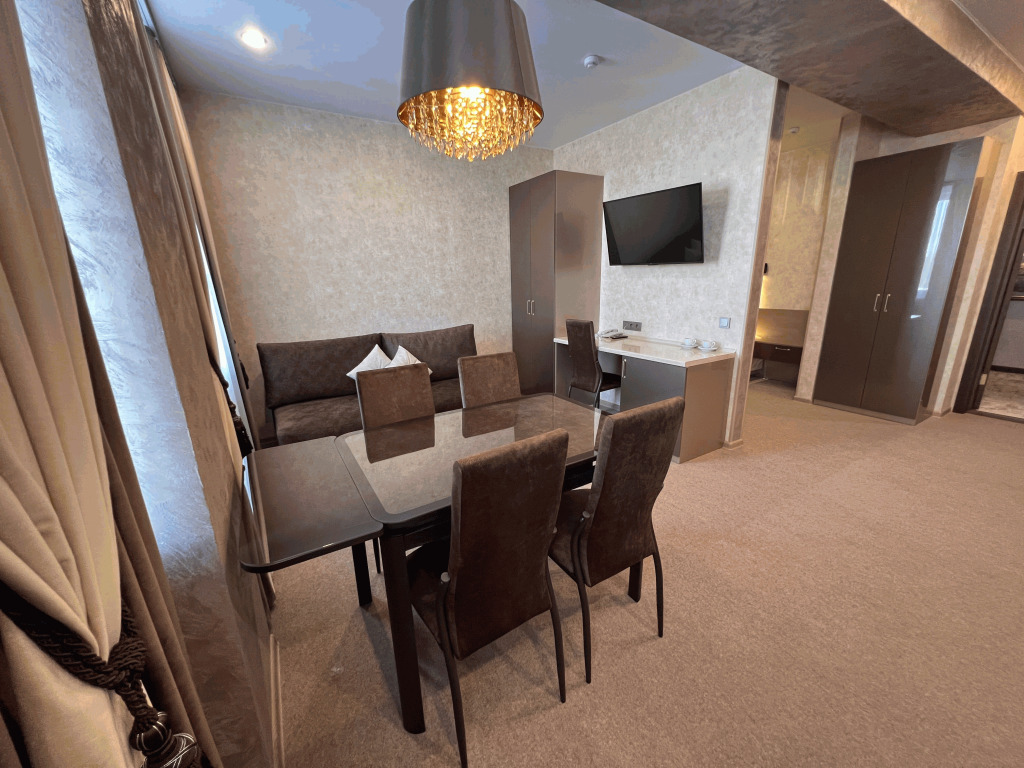 Общая кухня оборудована для самостоятельного приготовления пищи. На территории работает бесплатный Wi-Fi. Уточняйте информацию сразу при заезде. Если вы путешествуете на машине, припарковаться можно будет на парковке рядом. Среди услуг для красоты и здоровья — сауна. Здесь рады животным. Допускается размещение с питомцами за дополнительную плату. А ещё в распоряжении гостей гладильные услуги. Чтобы вы могли отдохнуть после долгого дня, в номере есть халат. Оснащение зависит от выбранной категории номера.