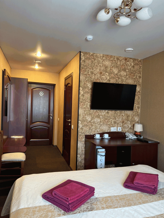 Путешествие с семьейНе ожидала от отеля 2**Останавливались на ночлег в данном отеле по пути из Архангельска. Наталье огромное спасибо за помощь ! Честно говоря, не ожидала такого сервиса в отеле 2 **, были приятно удивлены. Расположились в номере на третьем этаже, кровать очень удобная, есть кондиционер, телевизор. В туалете все необходимые принадлежности, фен. На этаже кулер , есть хорошо оборудованная кухня ( холодильник, варочная панель, микроволновка, чайник) для гостей в доступе чай в пакетиках и сахар. Есть посуда, приборы. И главное везде чистота!!! И тишина ночью, Выспались, отдохнули замечательно.