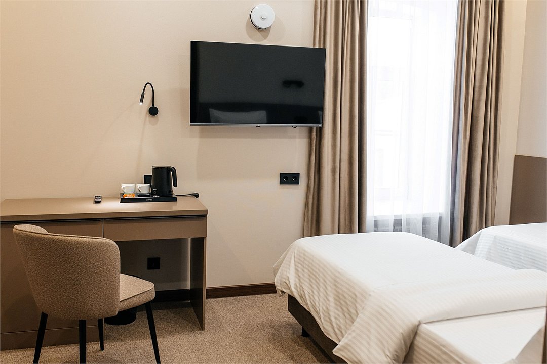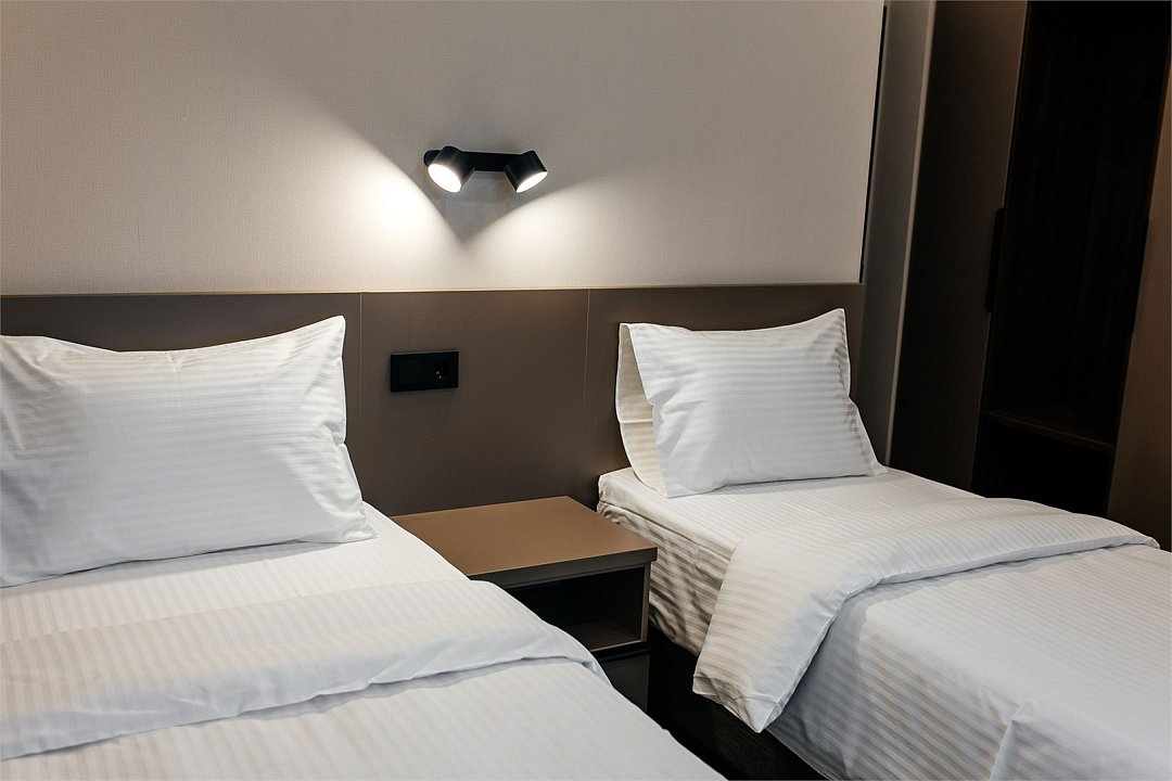Wi-Fi, ванная комната, банные полотенца, тапочки, две односпальные кровати, унитаз, гостиничная парфюмерия, туалетные принадлежности премиум-класса, мыло, без питомцевВ гостиничном номере