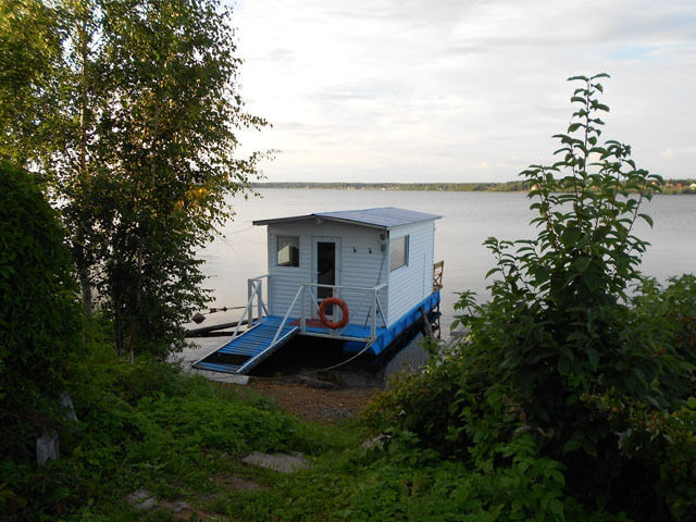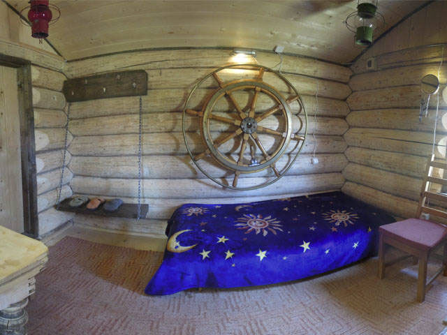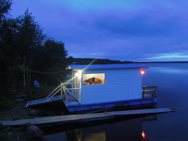 В этой уютной плавдаче гости точно почувствуют себя моряками, здесь, практически, не вставая с кровати посетители смогут ловить рыбу на удочку и любоваться озёрными просторами Тудозера.