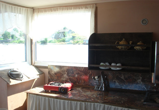 - кухня с видом на озеро