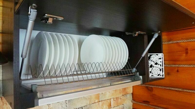 В каждом доме есть кухня со всем необходимым для готовки оборудованием: плита, чайник, холодильник, микроволновая печь, посуда, столовые приборы.
