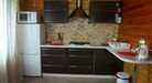 В доме мини-кухня со всем необходимым для приготовления: микроволновая печь, холодильник, чайник, плита, большой набор посуды, обеденный стол.