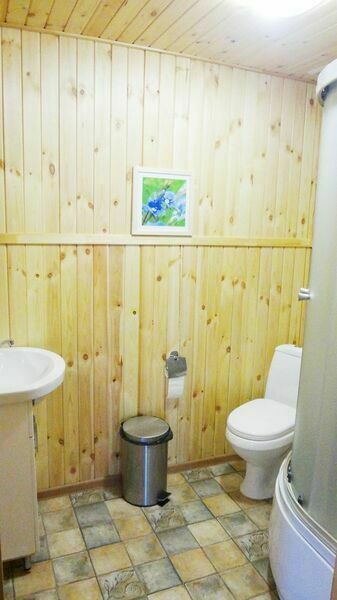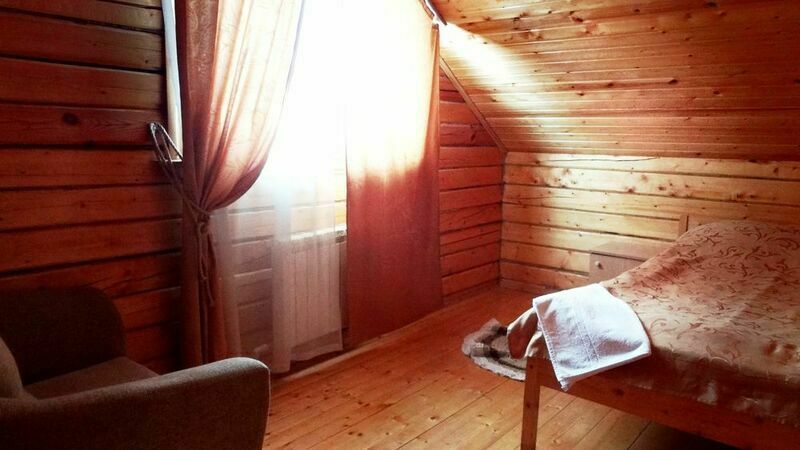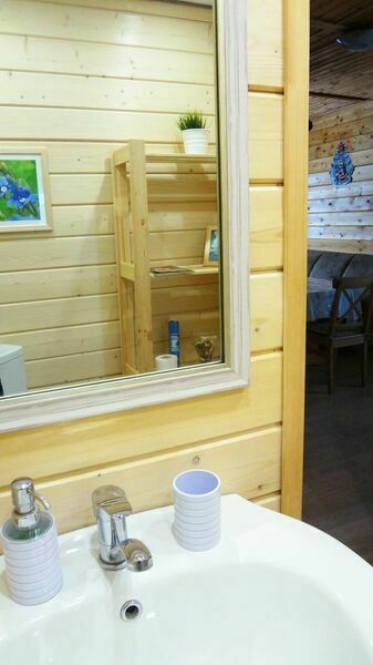 Короткий отпуск с друзьямиОтличное место для отдыхаПриезжали на 2 дня двумя семьями с детьми. Занятий нашли для себя массу: сходили за грибами, порыбачили, покатались на моторке, попарились в баньке, попили чай из самовара и сделали шашлыки. Летом ещё и купаться можно было бы. Домик очень приличный, набор посуды есть (не нашли только дуршлаг), 3 комнаты с кроватями и постельным бельём на 2-м этаже и гостиная-кухня на 1-ом. На территории прудик с карасями, качельки, Детский комплекс, площадка для спорта, домик бабы-яги, баня, беседка для шашлыков. Территория очень приятная и ухоженная, лес на территории, есть площадка для пейнтбола. Жирный минус - вода. Она желтого цвета и с запахом железа не смотря на наличие фильтров, при нас как раз фильтр сменили, но это не особо помогло. Не очень приятно умываться. Использовать её для приготовления пищи нельзя, надо брать запас питьевой воды с собой. Но это можно вполне пережить при недолгом пребывании.