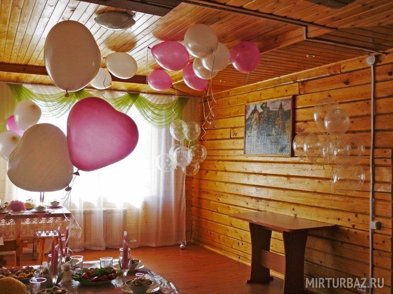 Здесь есть банкетный зал на 60 человек, для летних торжеств — беседка у пруда, а также можно разместить Ваших гостей в уютных номерах коттеджей.