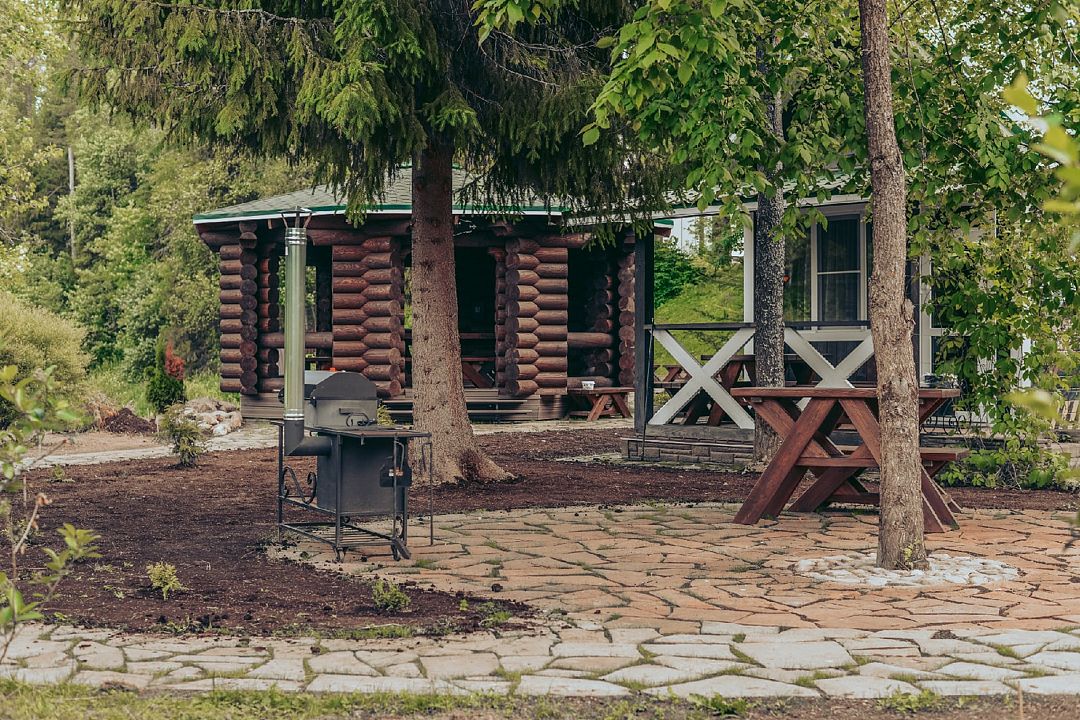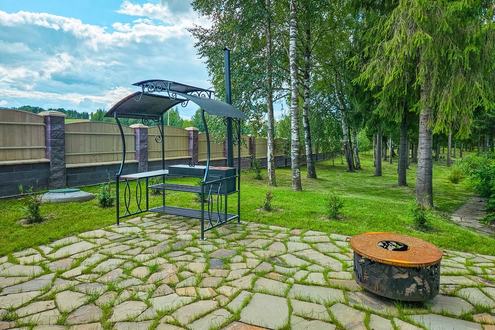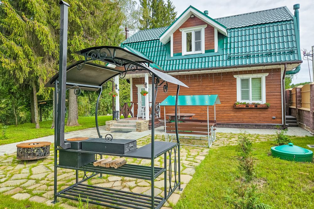 На придомовой территории вы найдете уютную беседку, мангальную зону и костровую чашу, идеально подходящие для вечерних посиделок на свежем воздухе.