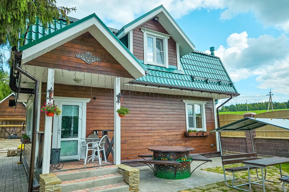 Загородный дом для семьи или небольшой компании. Дом отдыха Романтик – это двухэтажный загородный дом общей площадью 100 м2, идеально подходящий не только для семейного отдыха на природе, но и для постоянного и временного проживания небольшой семьи. Время заезда: не ранее 14:00. Время выезда: не позднее 12:00.