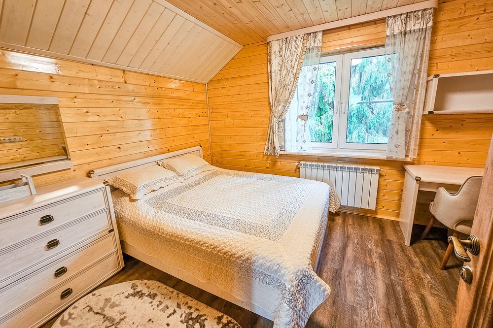 Для удобного размещения гостей дом располагает 6 спальными комнатами и удобствами на каждом этаже. В гостевом доме есть холодная и горячая вода, при этом из всех кранов поступает только мягкая и чистая питьевая вода из скважины базы отдыха. В Вологде нет аналогов такой экологической чистоте воздуха и воды.