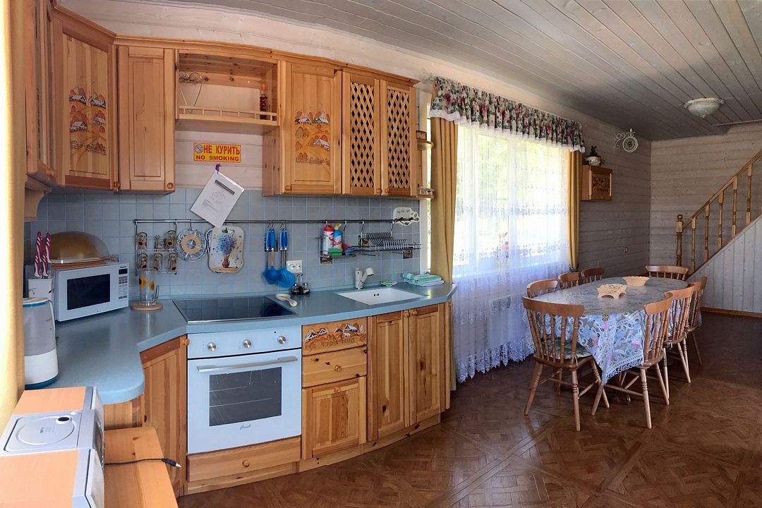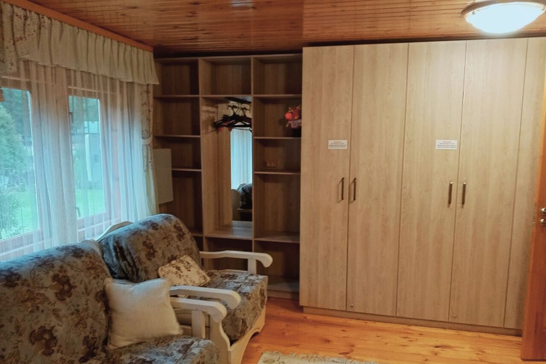 Дом оборудован всем необходимым для постоянного проживания семьи с ребенком: кухня с плитой и духовкой, кабельное тв, раздельные спальни, душевая кабина, питьевая вода из крана. В доме всегда много естественного света, и он легко проветривается. Из окон открывается красивый вид на садовую территорию, луг и лес. Свежий воздух и комфорт зарядит Вас энергией на многие месяцы вперед.