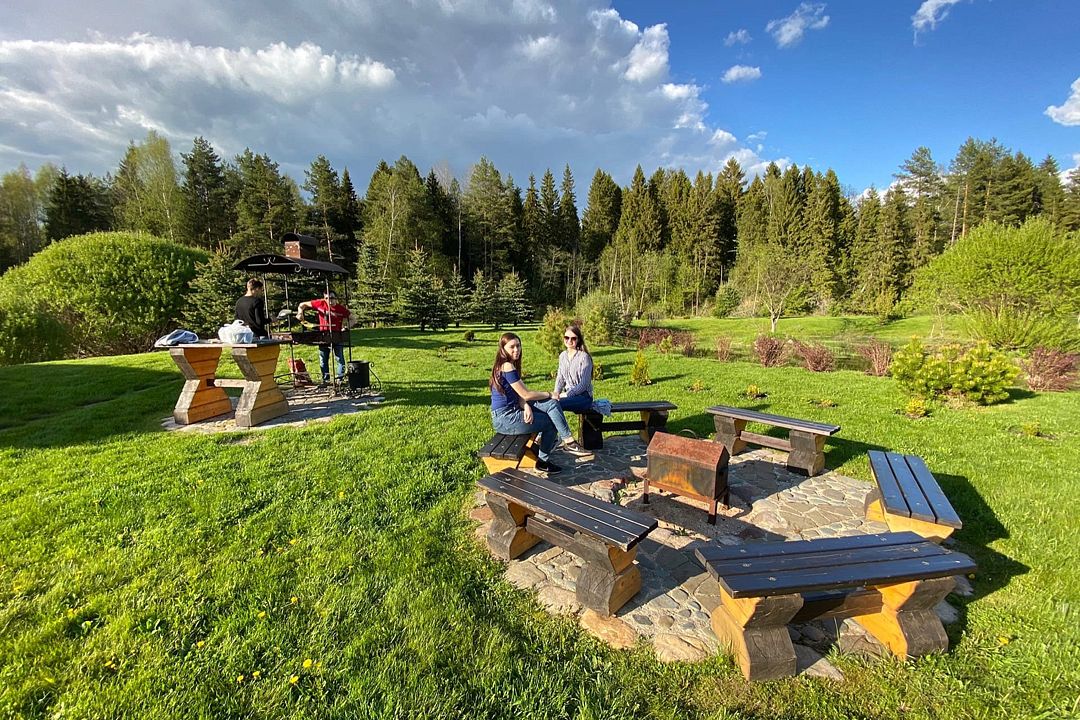- собственная барбекю зона с мангалом и кострищем;