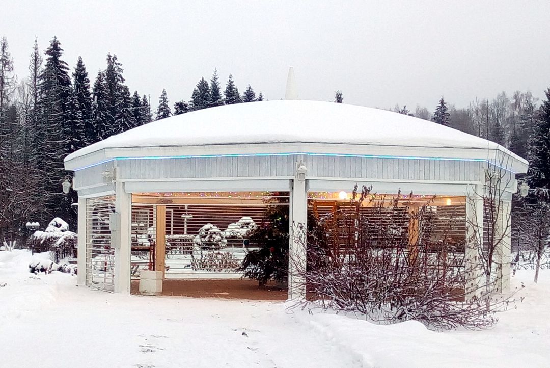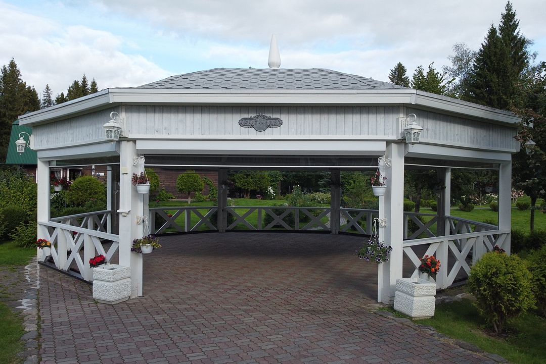 Банкетная ротонда — это идеальное решение для банкета на природе, сочетающее все удобства городского банкетного зала, но буквально утопающее в зелени базы отдыха Резиденция Комела. Просторная зеленая территория вокруг банкетной ротонды позволит гостям полностью расслабиться и беззаботно провести время.