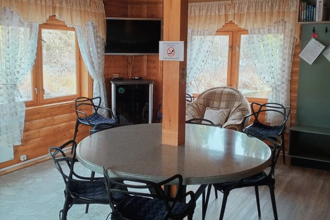 Дом расположен на территории вологодской базы отдыха Резиденция Комела. Базовая стоимость размещения указана на компанию до 6 человек. Максимальное количество отдыхающих может быть увеличено по согласованию с администрацией.