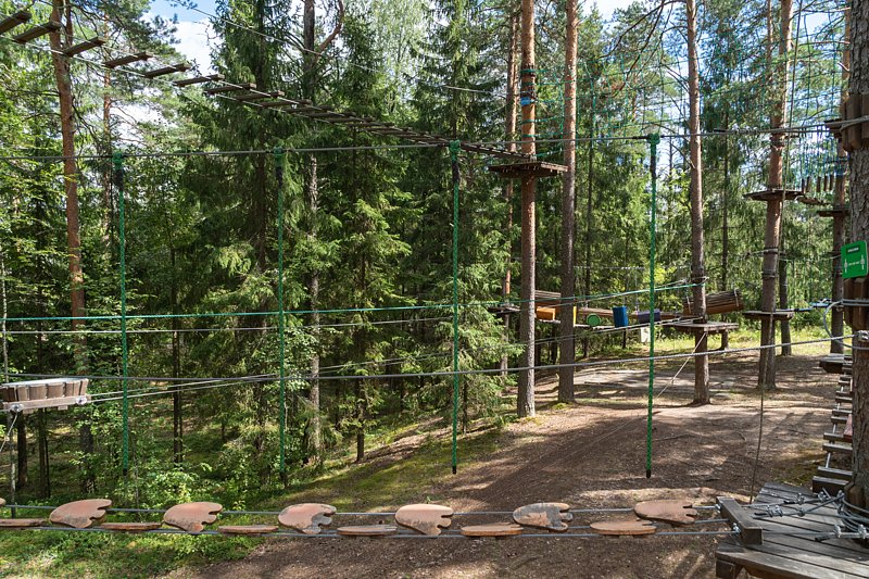 На территории базы «Сосновка» размещен веревочный парк с 4 взрослыми и 2 детскими трассами (с 7 до 11 лет). Трассы разбиты на разные уровни сложностей.