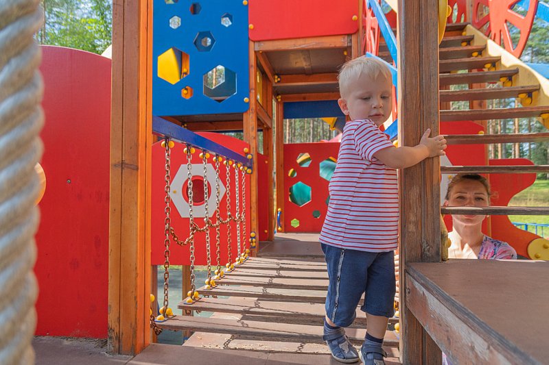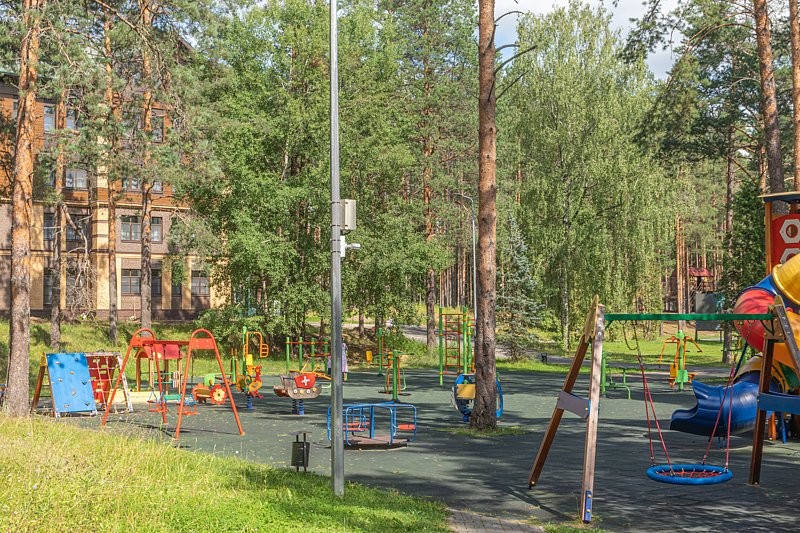 Детские площадки напротив столовой и рядом с веревочным парком в свободном доступе, а так же есть площадка WorkOut напротив здания столовой.