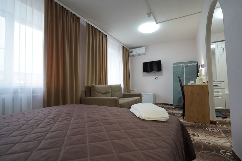 В комнате кровать (шириной 120 см), телевизор. санузел в номере, душ на этаже.