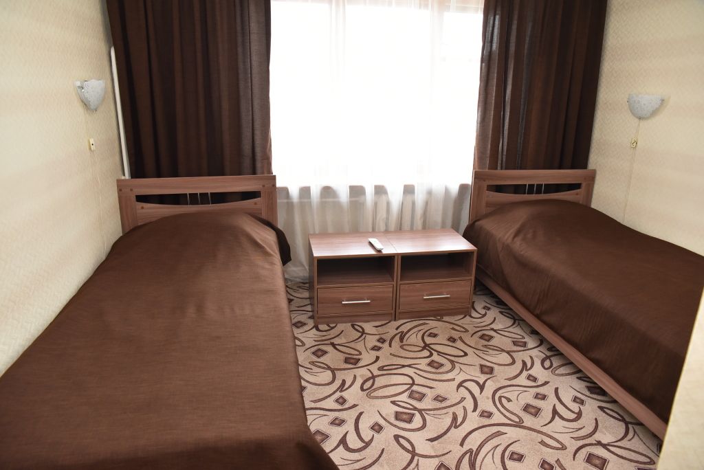 В комнате 2 односпальные кровати (шириной 90 см), телевизор, прикроватные тумбочки.
