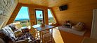 Домик с комфортом разместит до 8 человек на ночь, дневное пребывание не ограничено по количеству человек. Шикарный вид на Рыбинское водохранилище поразит с застекленной террасы с ротанговой мебелью.
