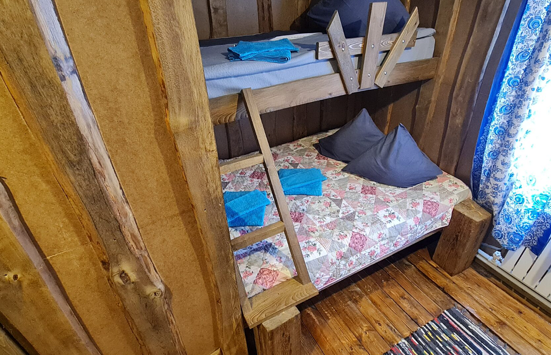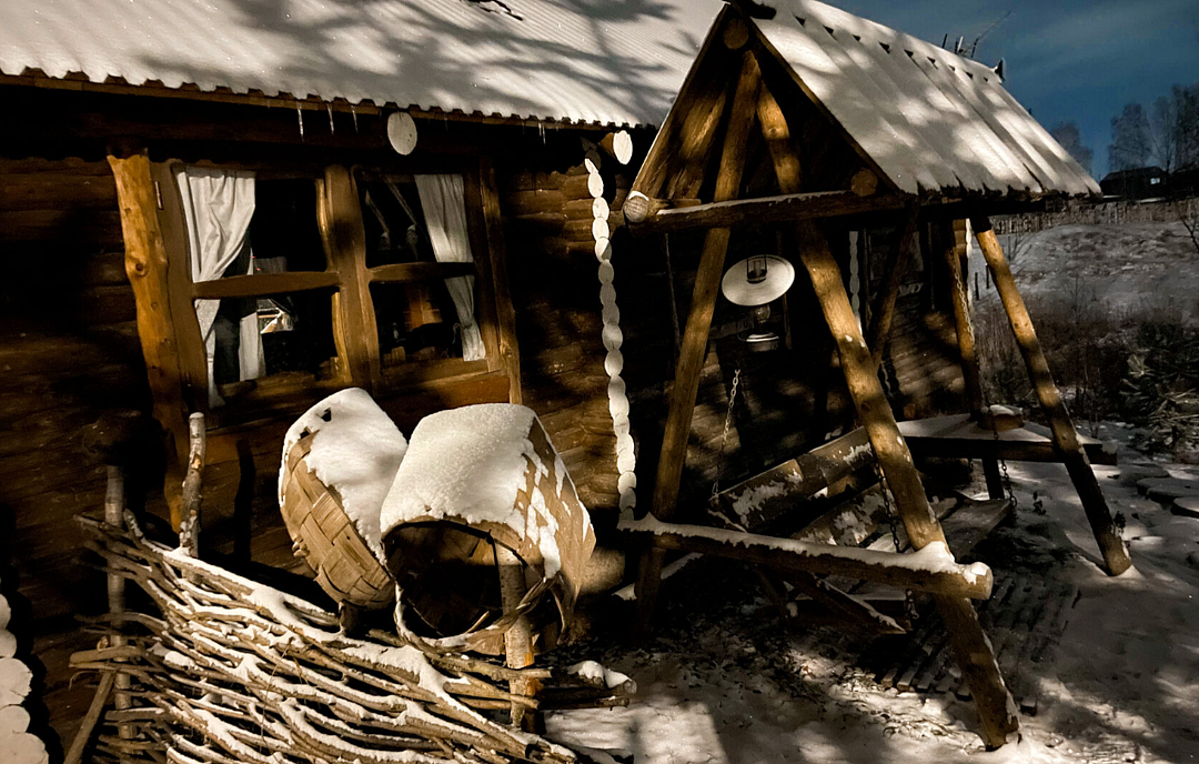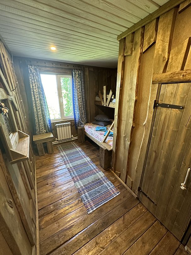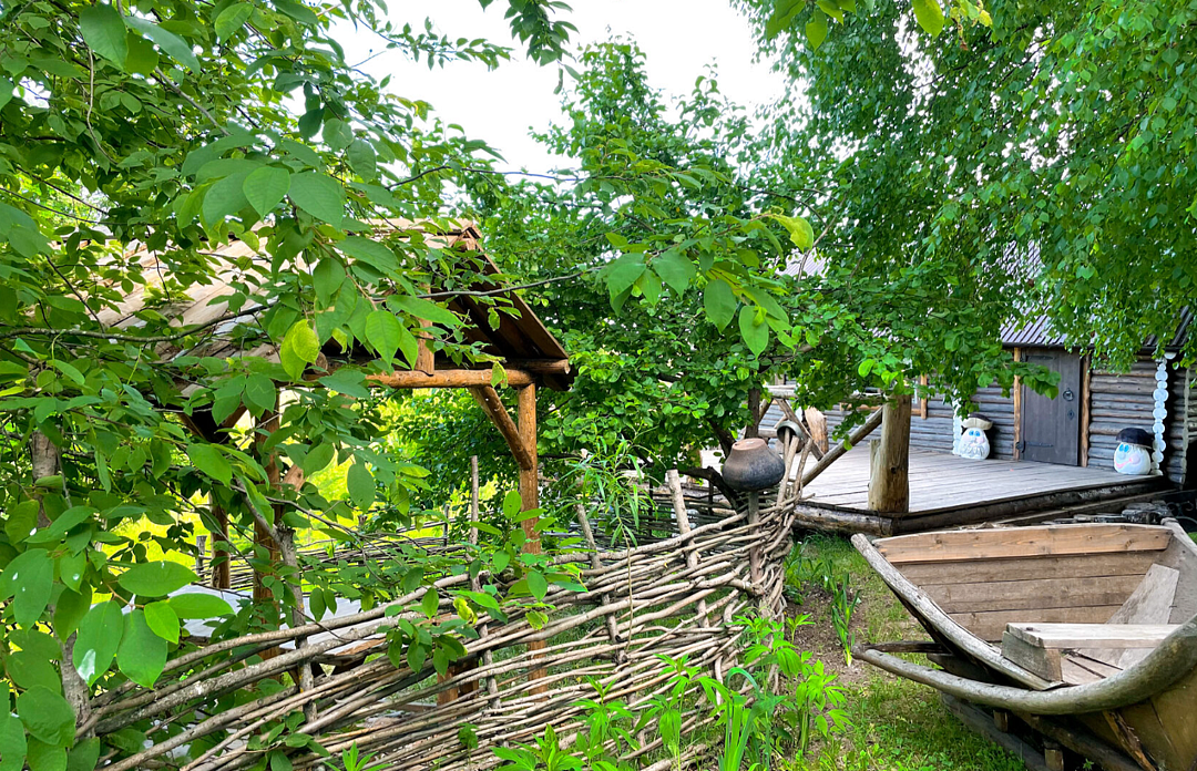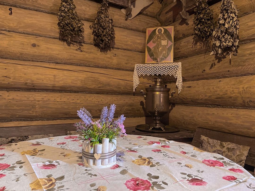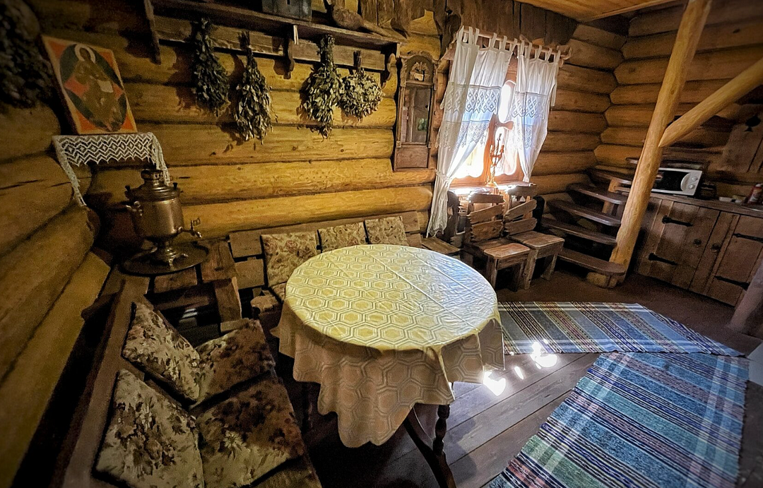 - Атмосферное место (живешь как будто в избе, с древне-русской атрибутикой)