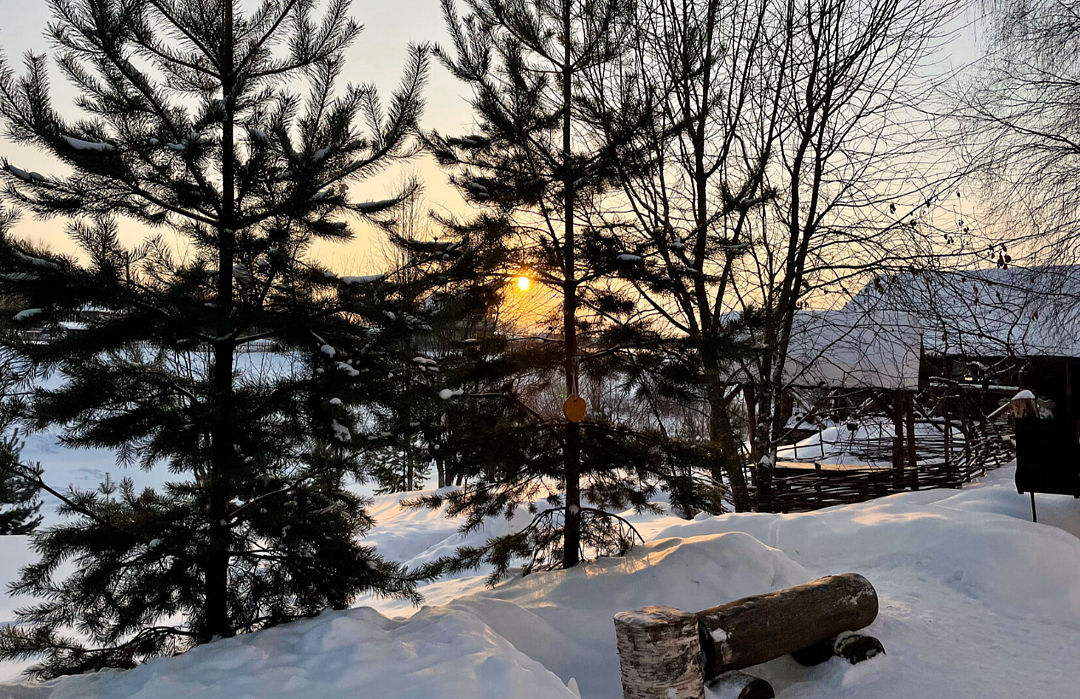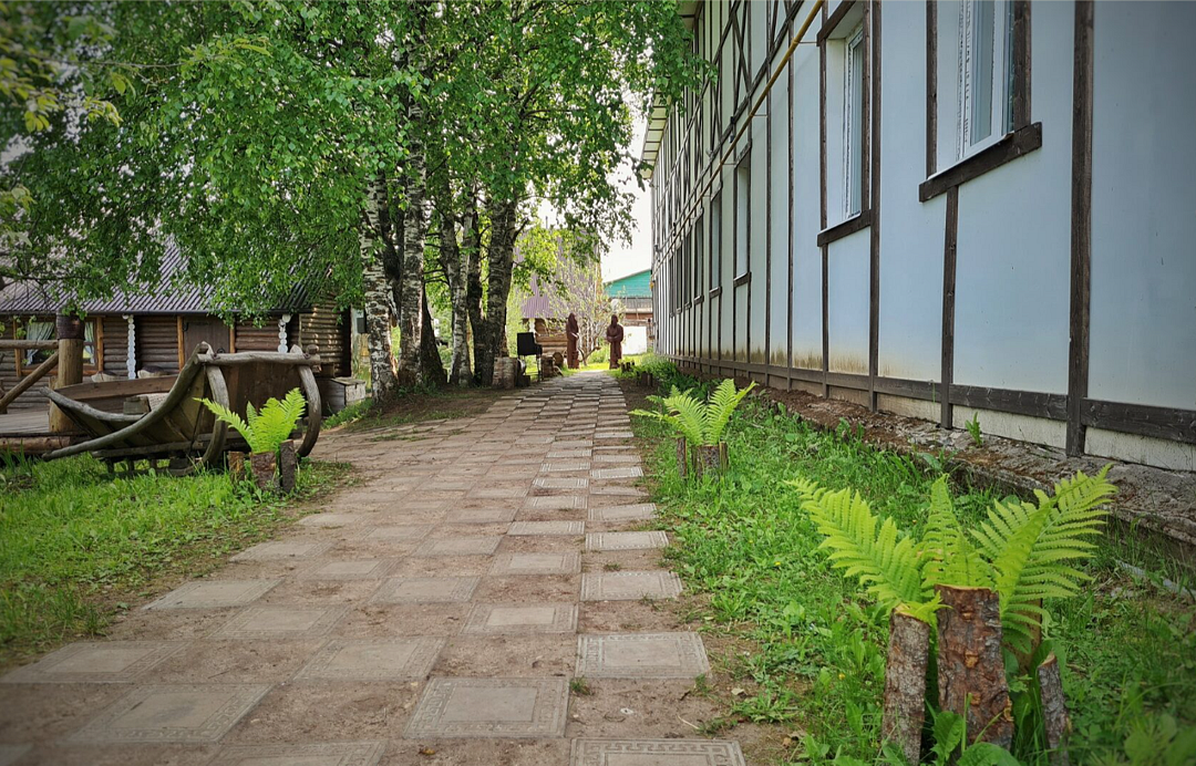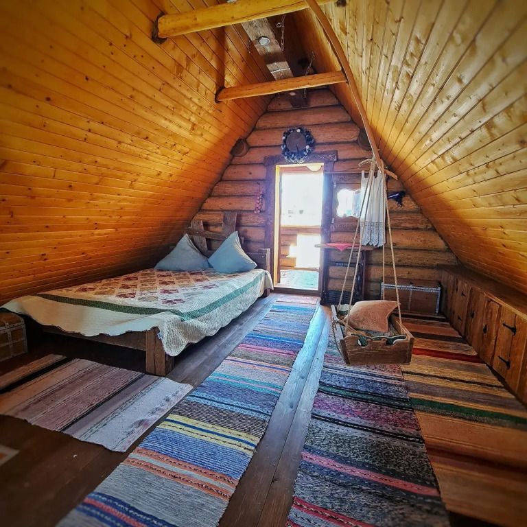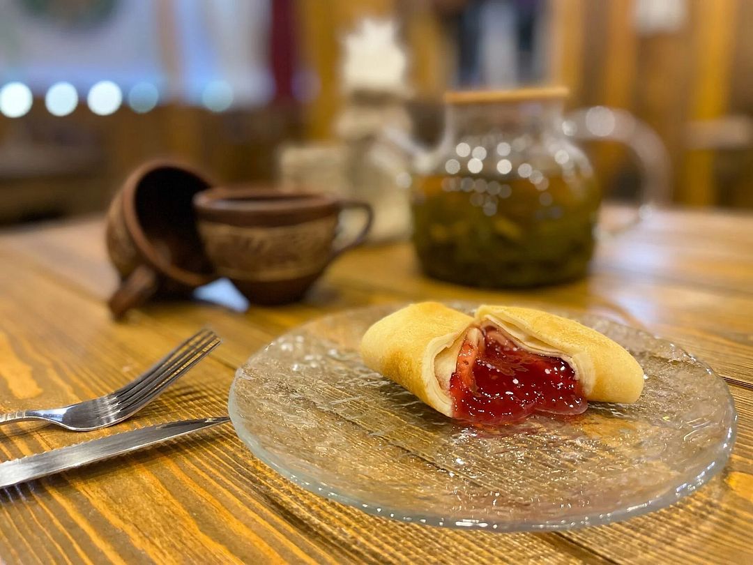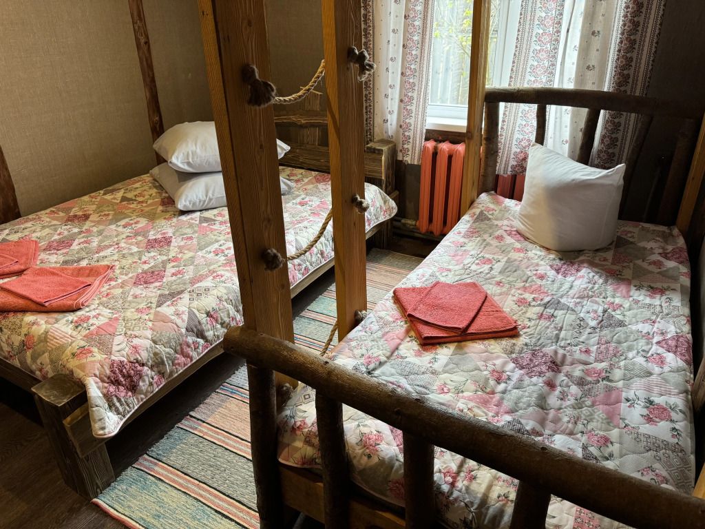 - Атмосферное место (живешь как будто в избе, с древне-русской атрибутикой)