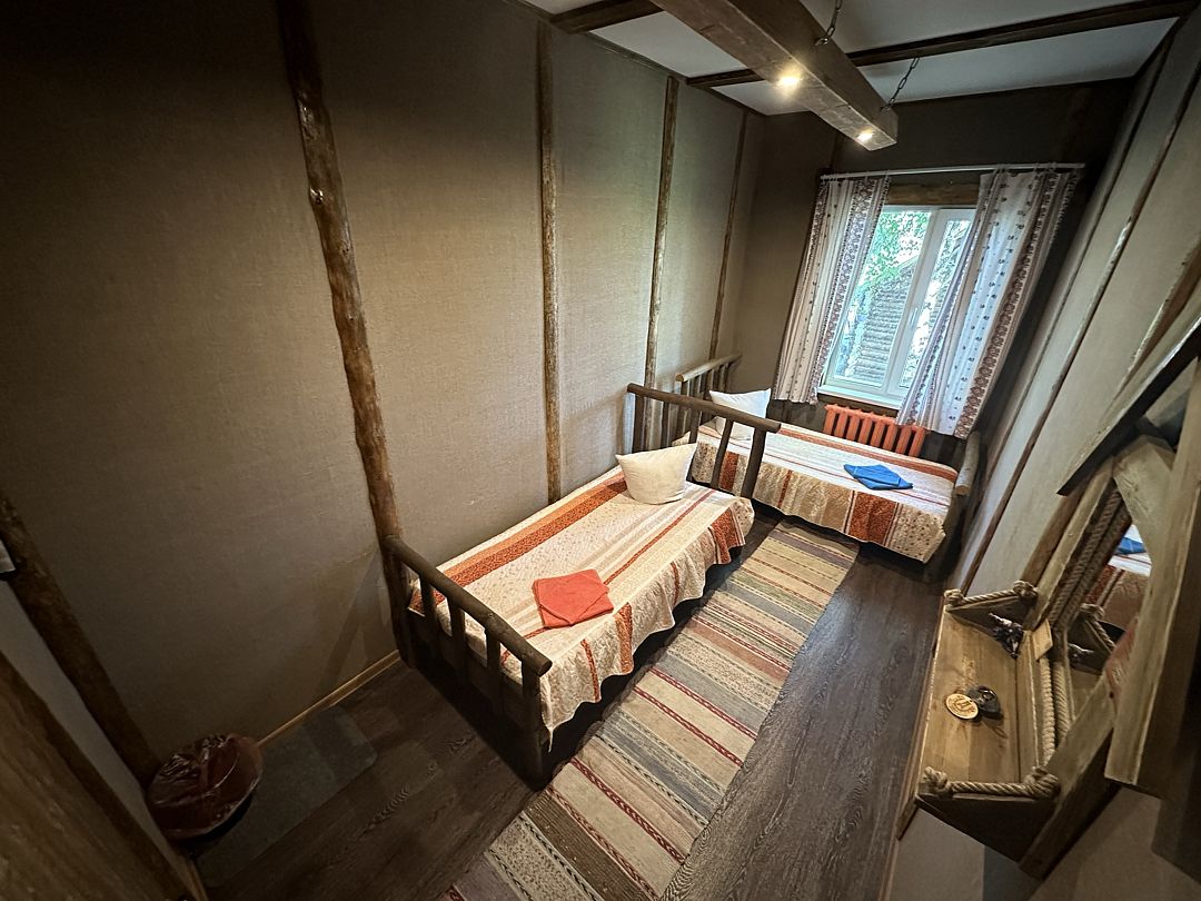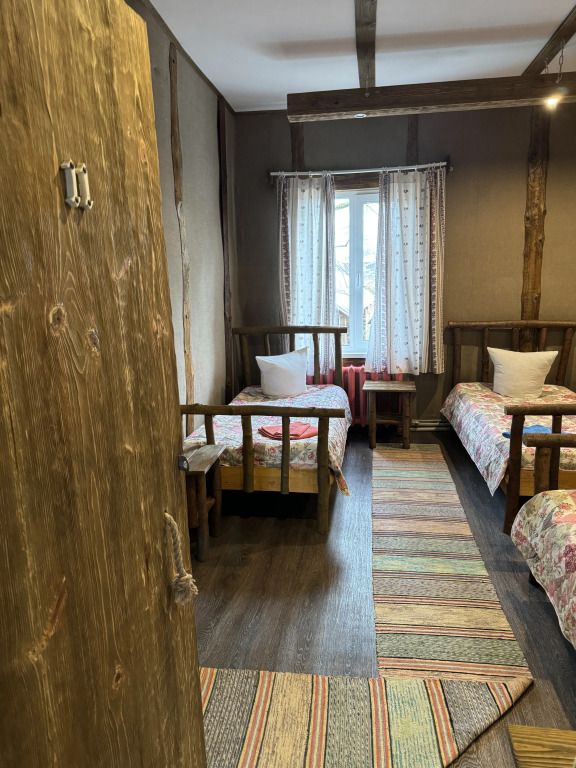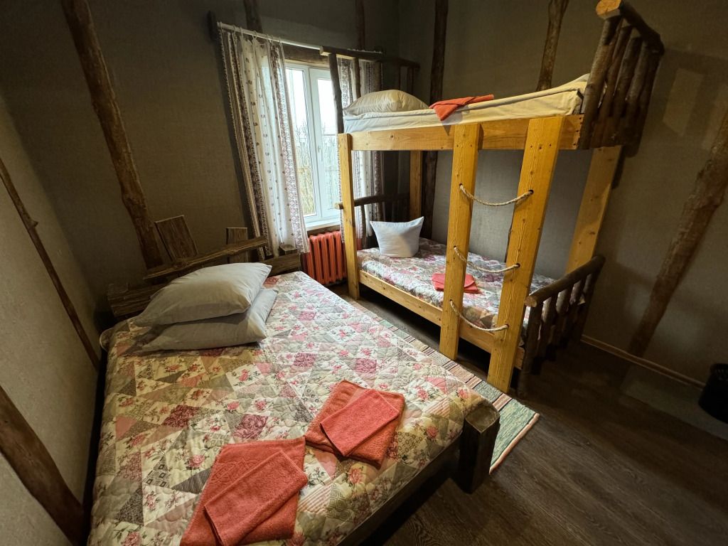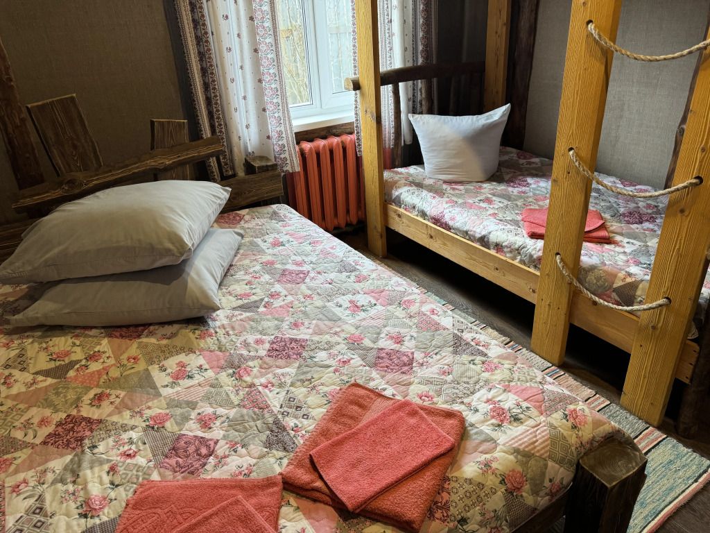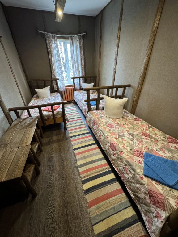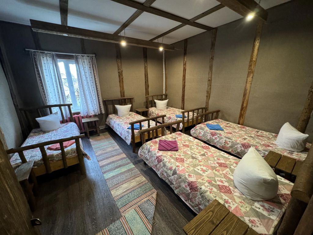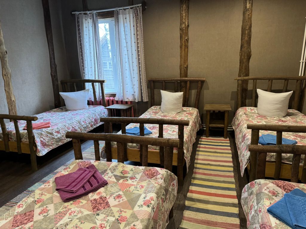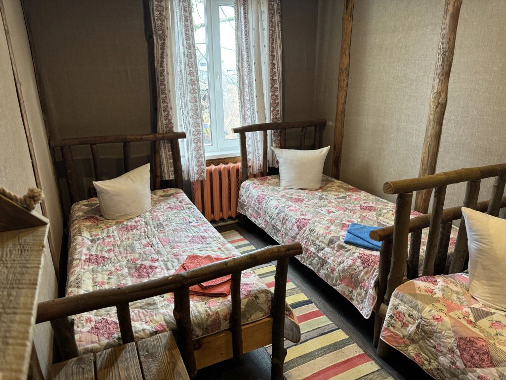 3 Кровати, тумбочки прикроватные, вешалки, санузел и душ на этаже