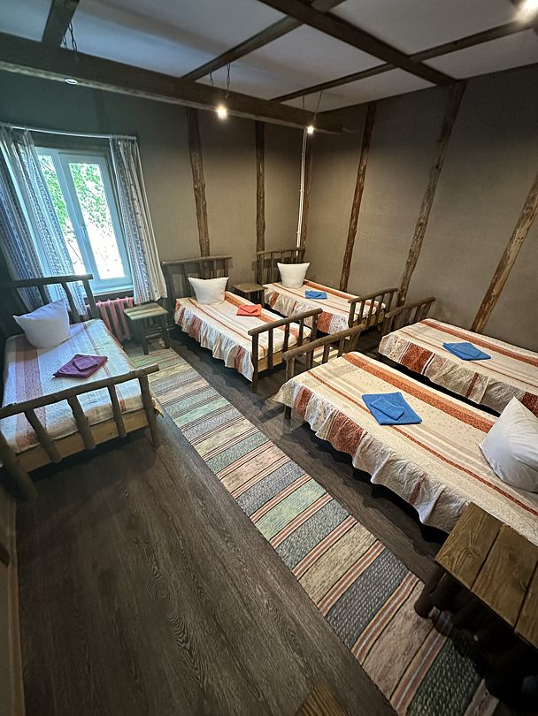 Рекомендация, во-первых сделать закрытое отопливаемое крыльцо, утеплить пол, чтоб на первом этаже не было так холодно! Во-вторых поменять весь персонал на кухне, нанять повара, готовящего вкусную еду с запасом на ВСЕХ постояльцев, а не только тех кто «успел» и вообще изменить подход к кухне! В-третьих: установить настенные полки в номерах. В-четвертых: чайники и чай в номерах! Очень грустно, что такое красивое место так запущено.
